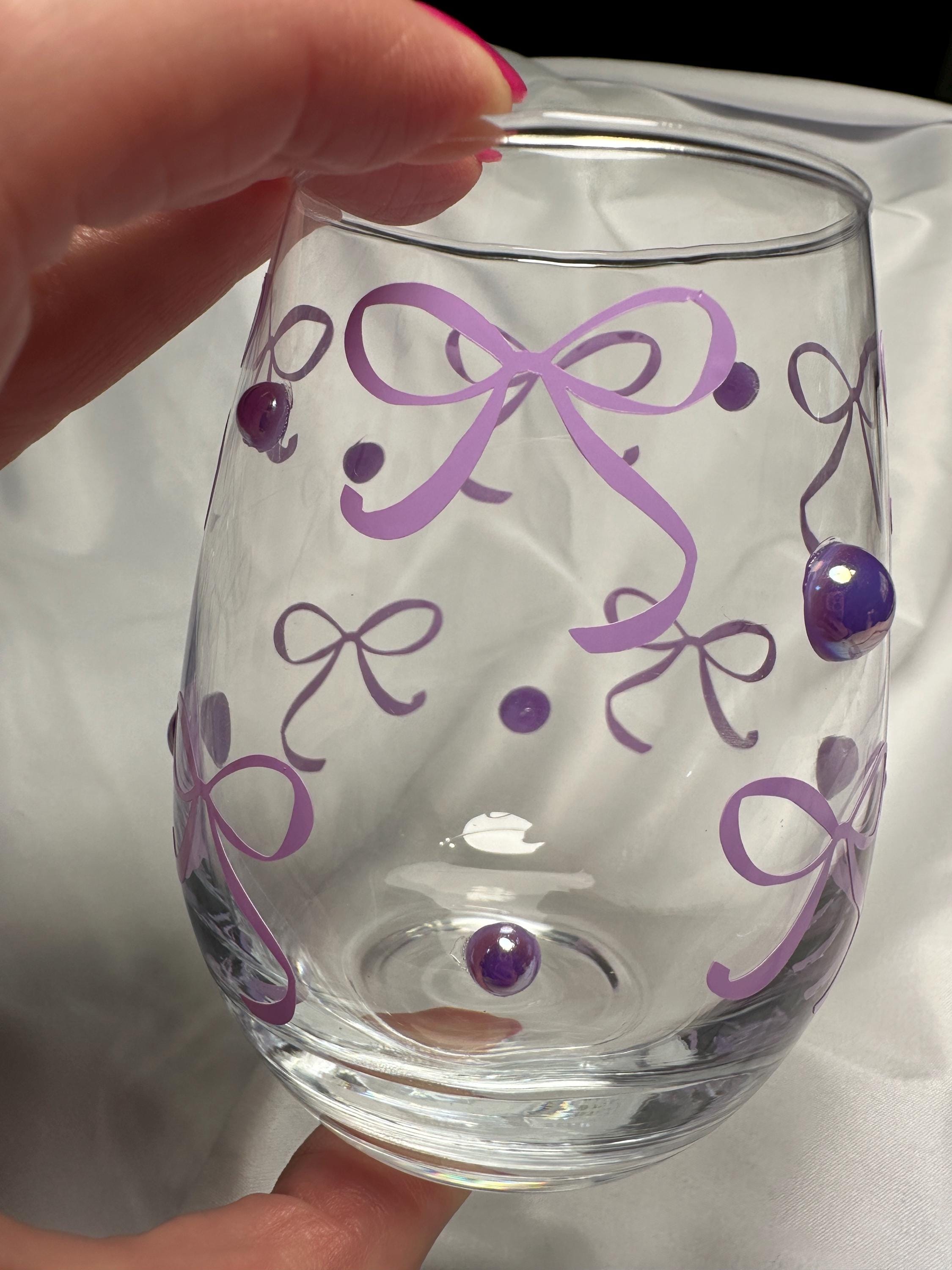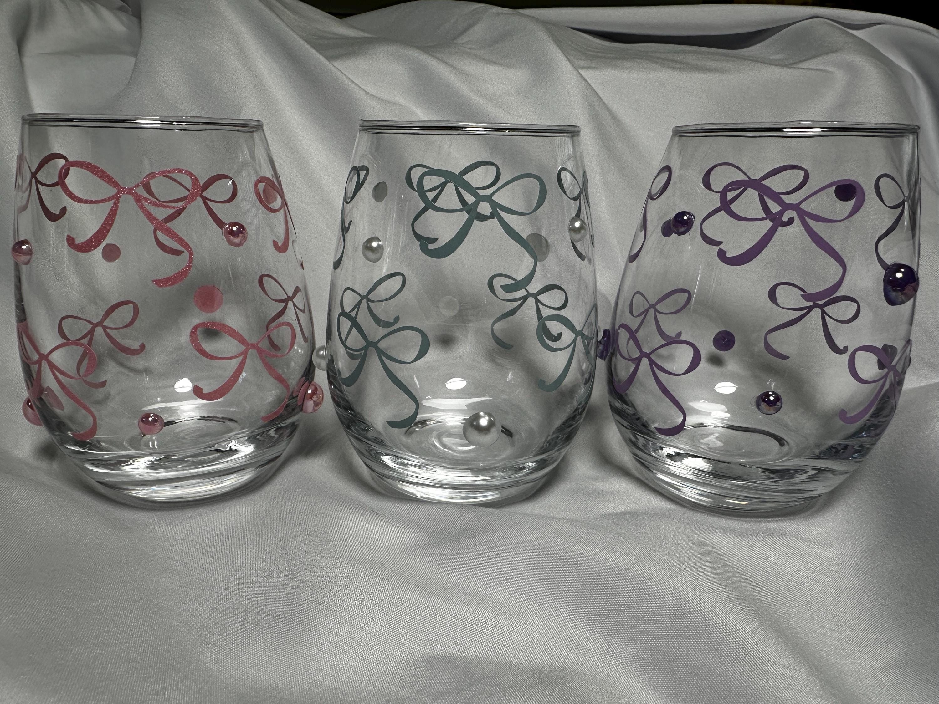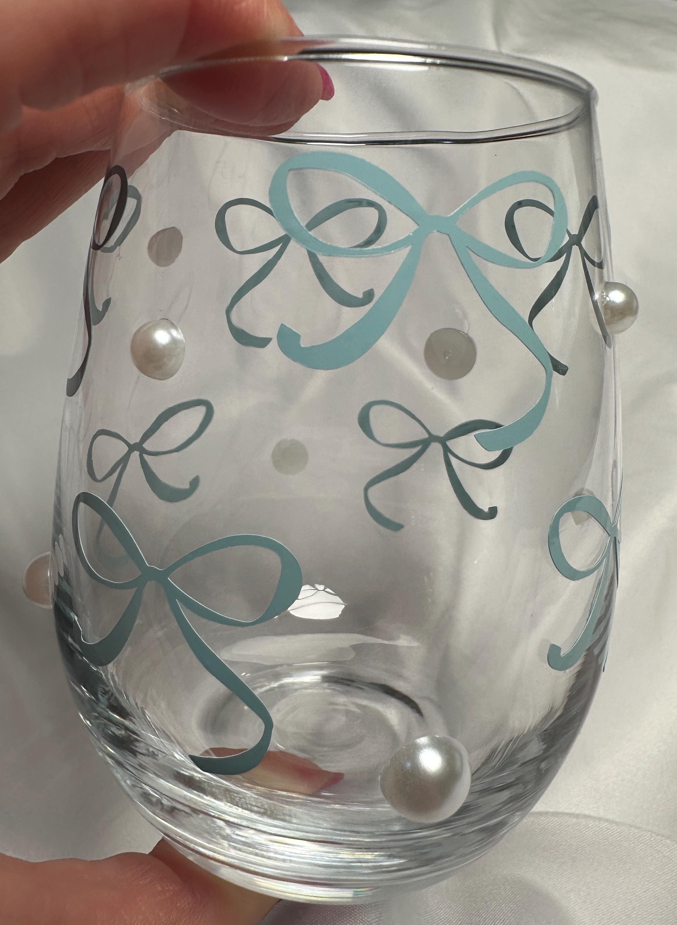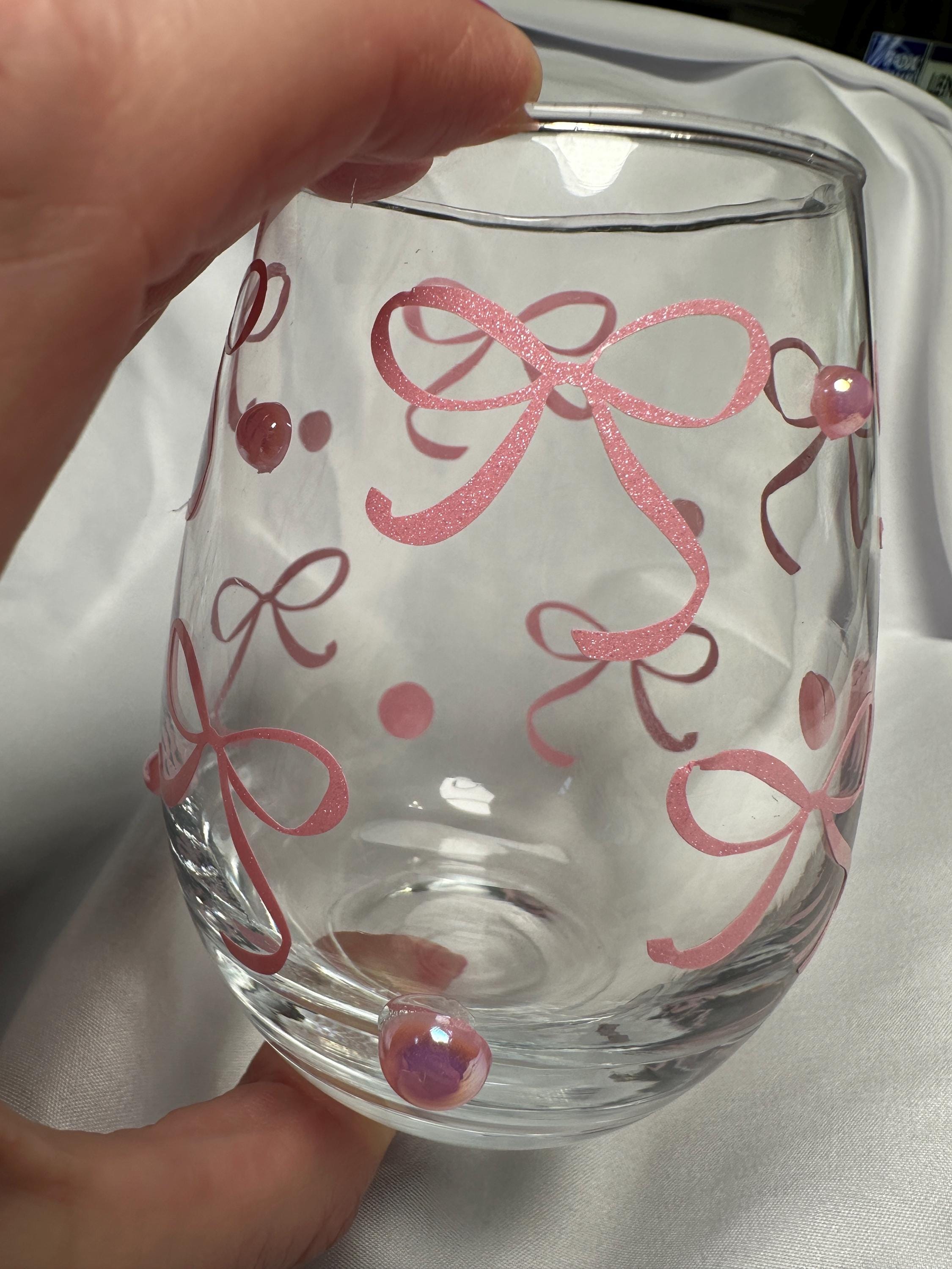 Elevate your drink experience with our beautifully handcrafted wine glasses, adorned with chic bows and delicate pearls. Whether you’re sipping sparkling water, your favorite cocktail, or a crisp glass of wine, these glasses make every moment feel a little more special.