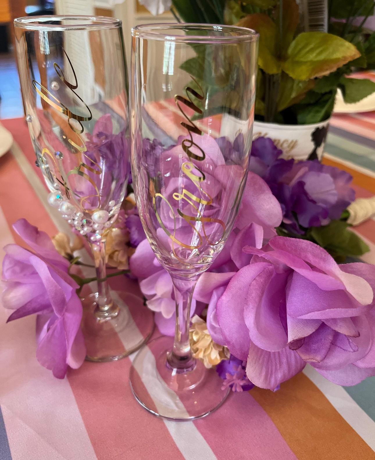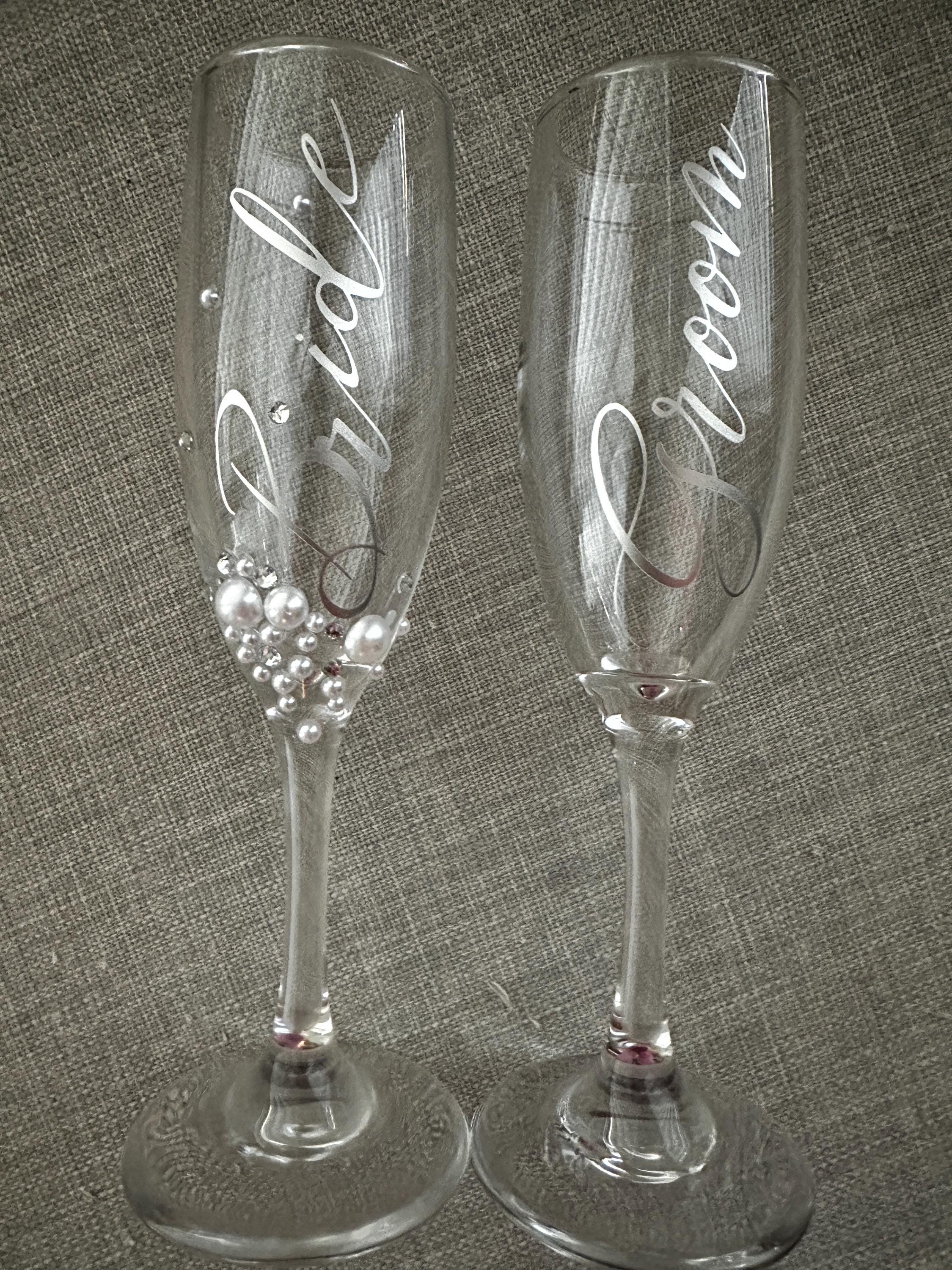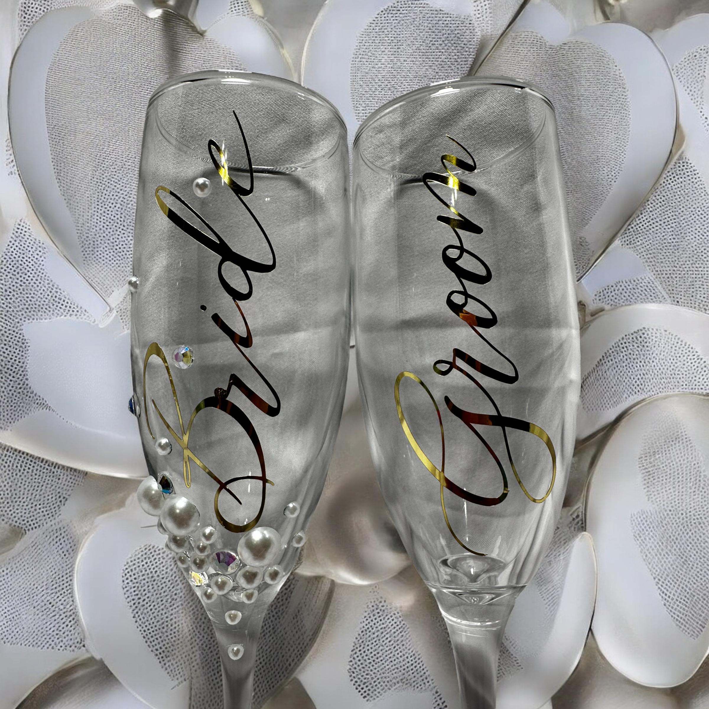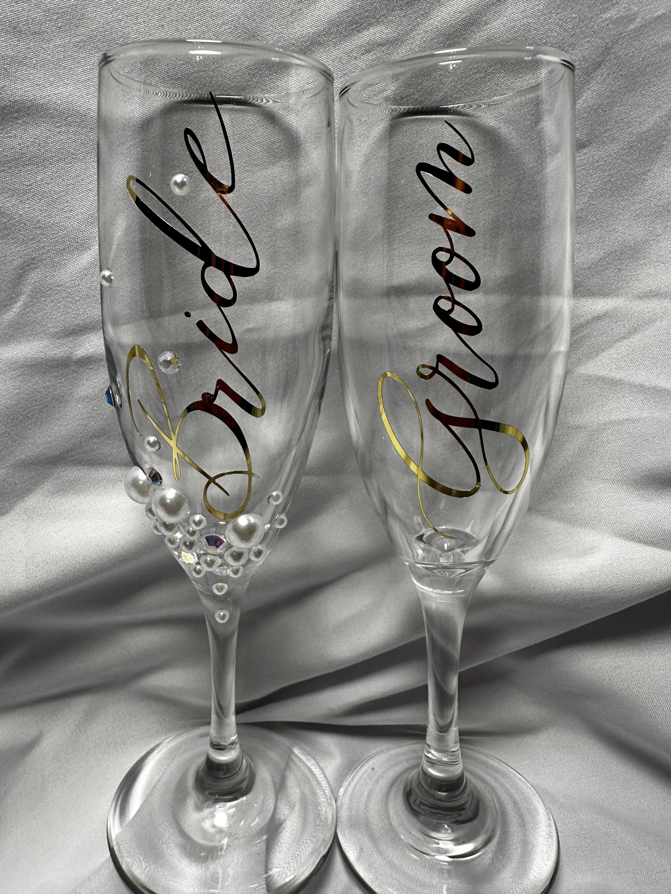Raise a glass to forever with our stunning Bride and Groom Champagne Flutes – the perfect keepsake for your special day. Handcrafted with care and a touch of romance, these elegant toasting glasses are designed to add a timeless sparkle to your wedding celebration, and little extra glam and bling for the bride.