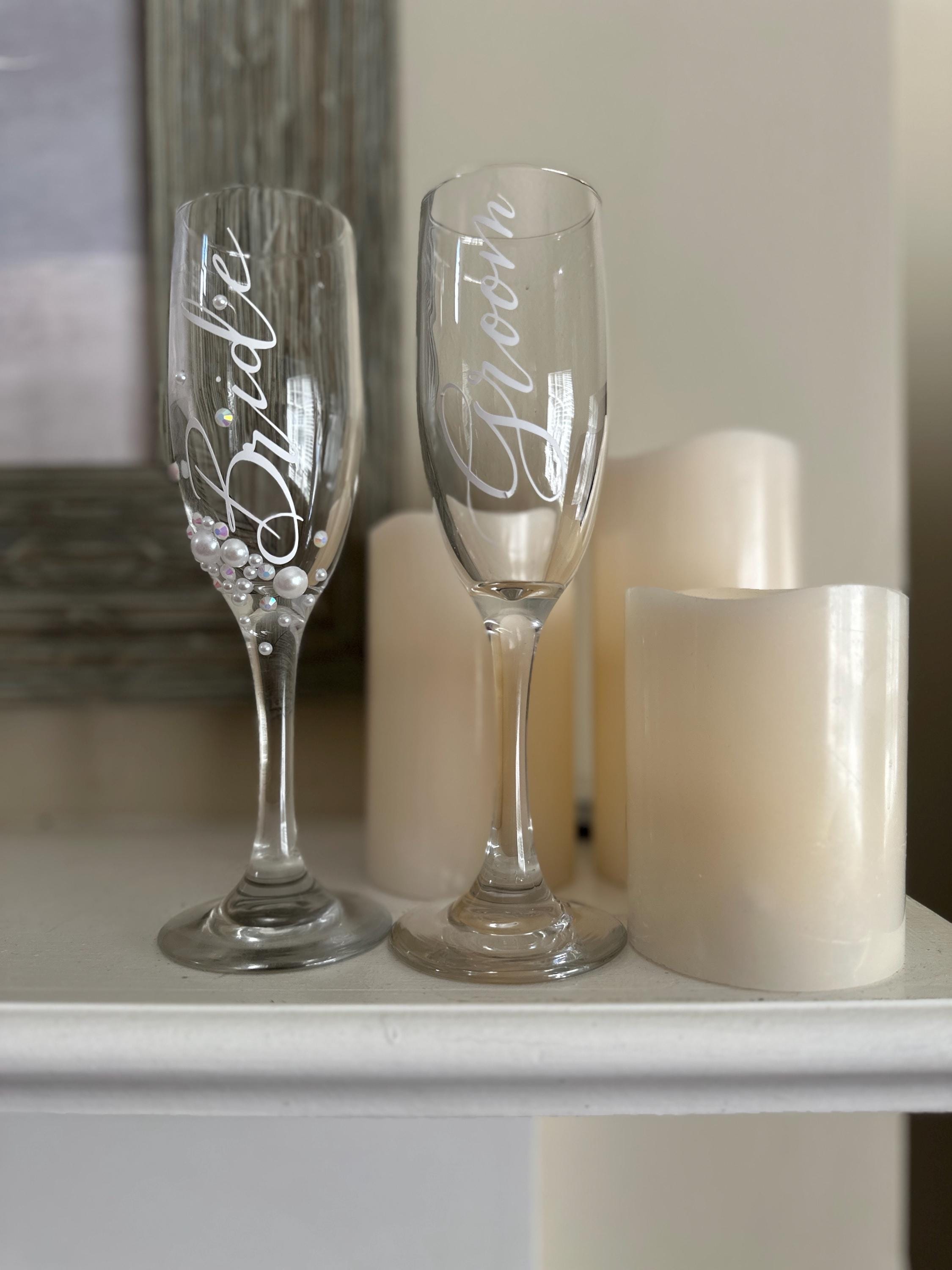 Bride and Groom Champagne Flutes - Elegant Wedding Toasting Glasses Set of 2. Prosecco Flutes