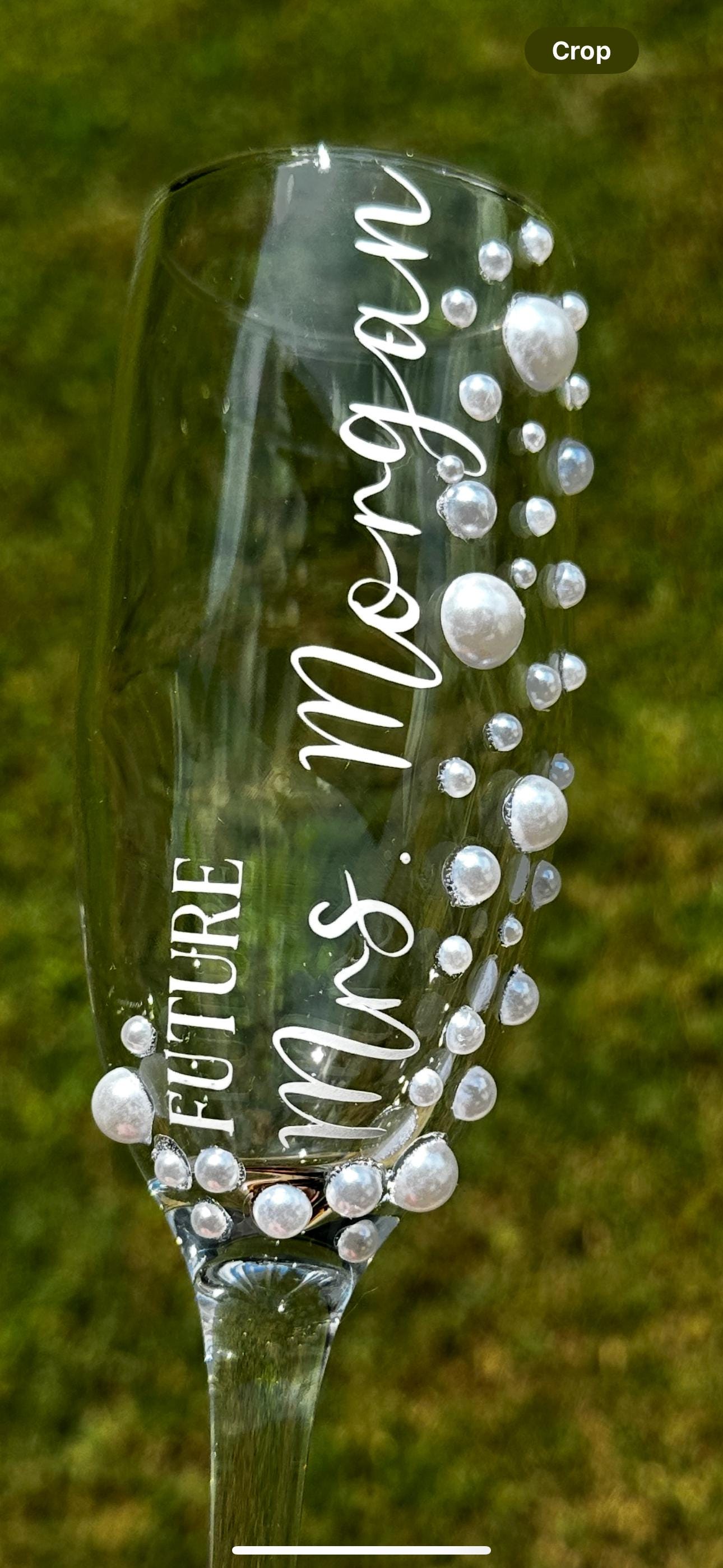 Custom "Future Mrs." Champagne Flutes: Pearl Bridal Shower Gift, Pearls and Prosecco