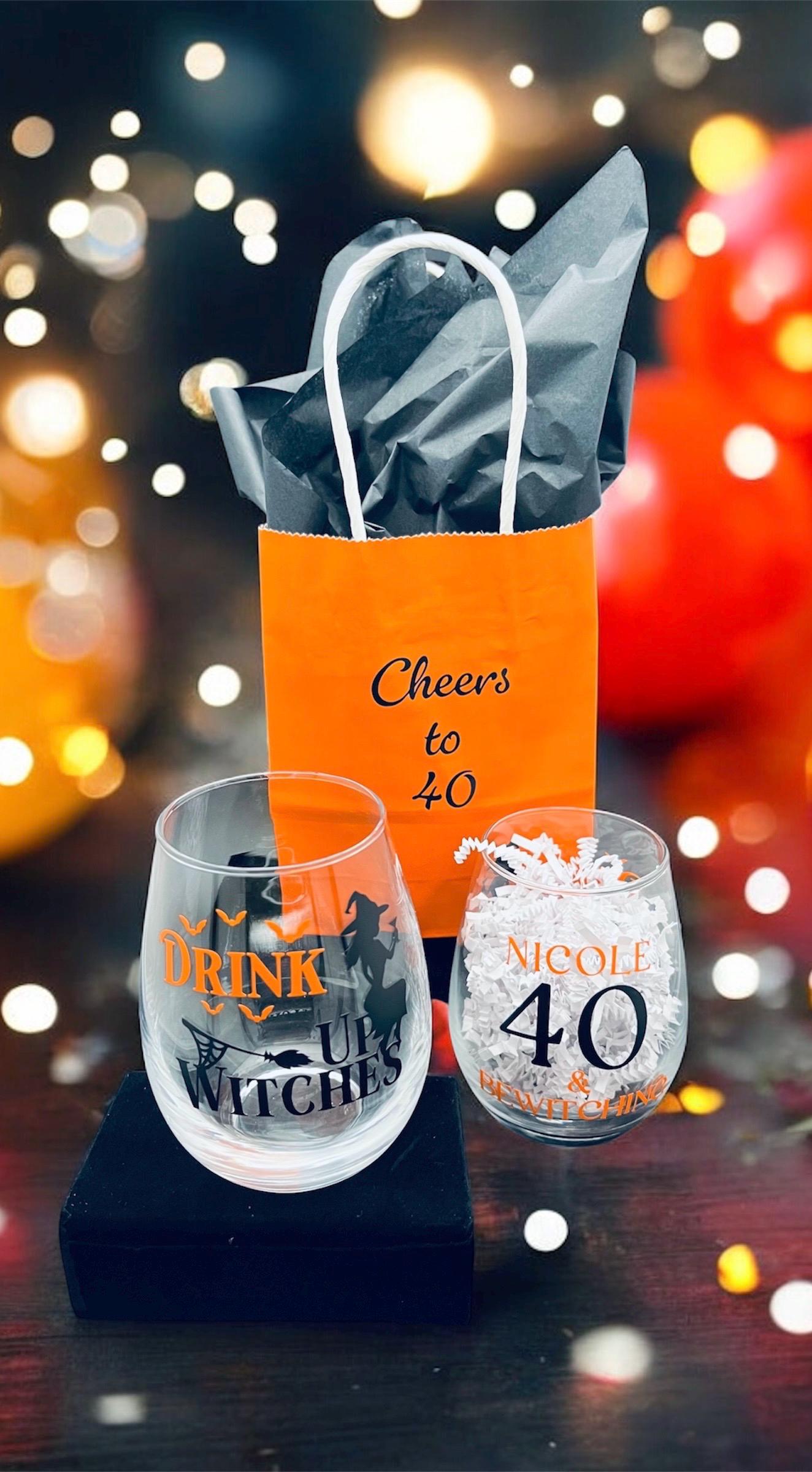Raise a glass and embrace your spooky spirit with this “Drink Up Witches” stemless wine glass or pint glass! Perfect for Halloween parties, witchy gatherings, or just adding a touch of magic to your everyday sipping.