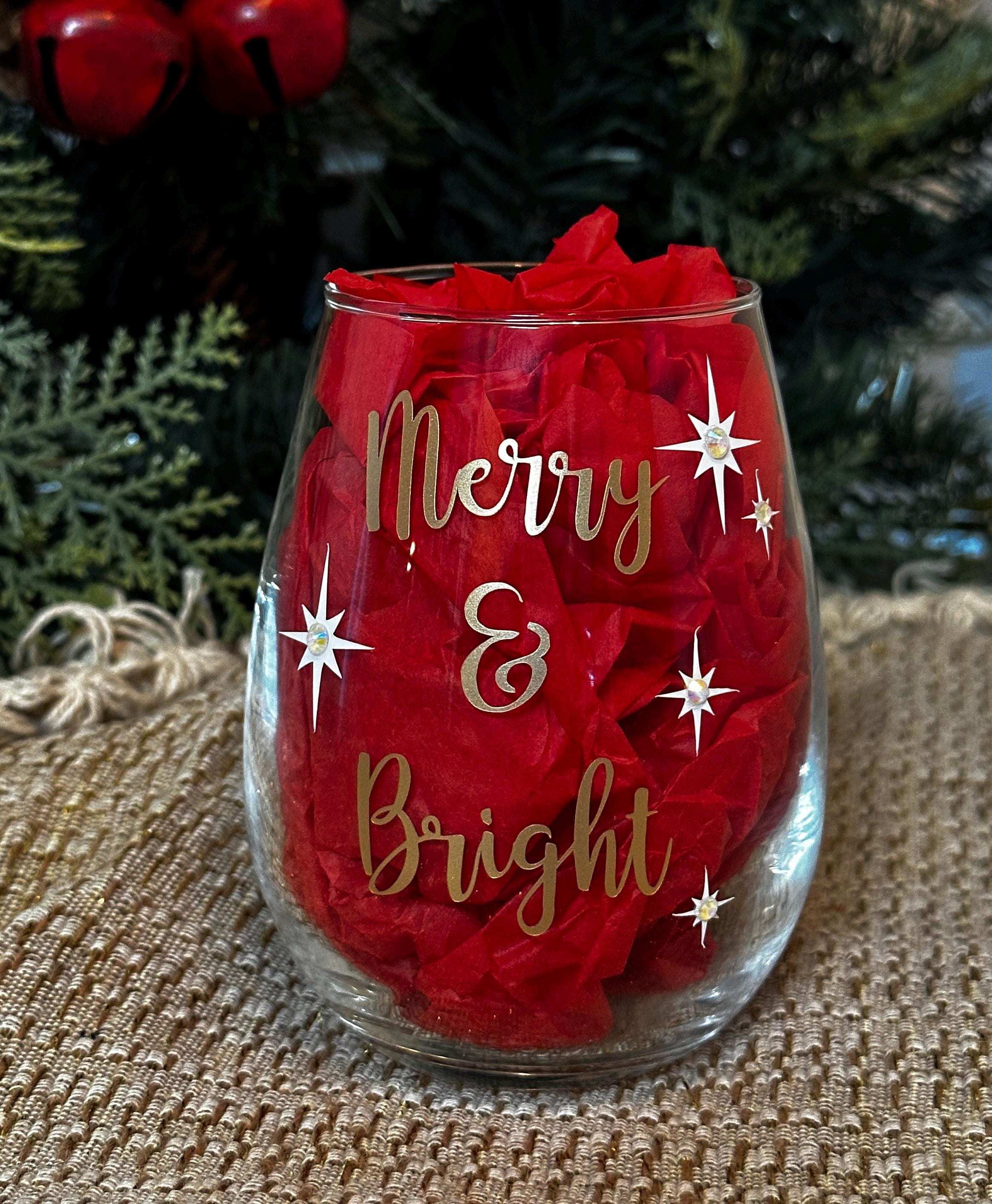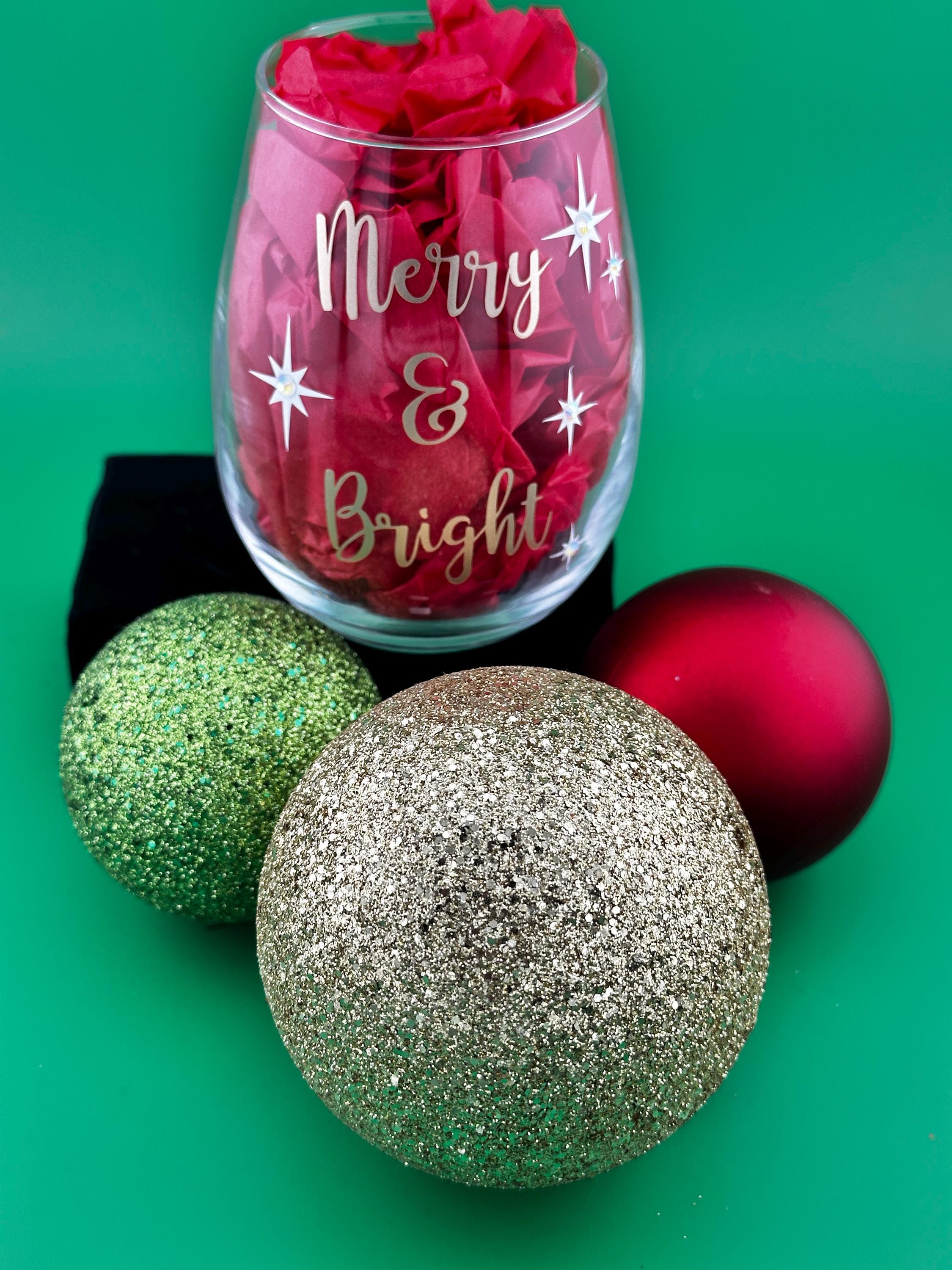 Bring a touch of festive cheer to your home or gift-giving with this beautifully crafted “Merry & Bright” wine glass! Featuring elegant gold lettering and star accents, this glass is perfect for holiday sipping, decorating, or adding a cozy Christmas touch to any room. Available in stemmed or stemless wine glass, pint glass or whiskey/rocks glass.